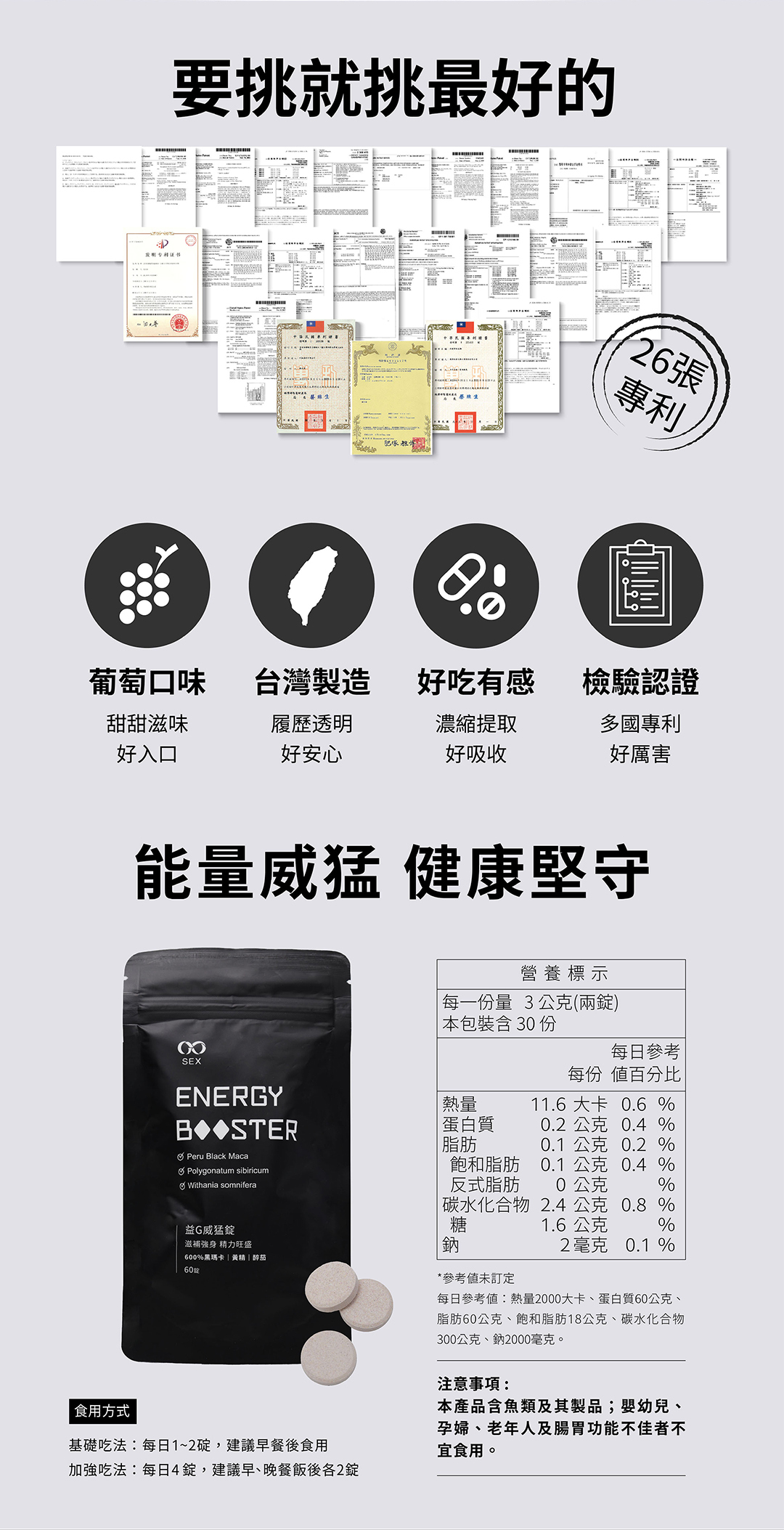 益G 威猛錠(葡萄口味)--市售唯一「咬」的瑪卡